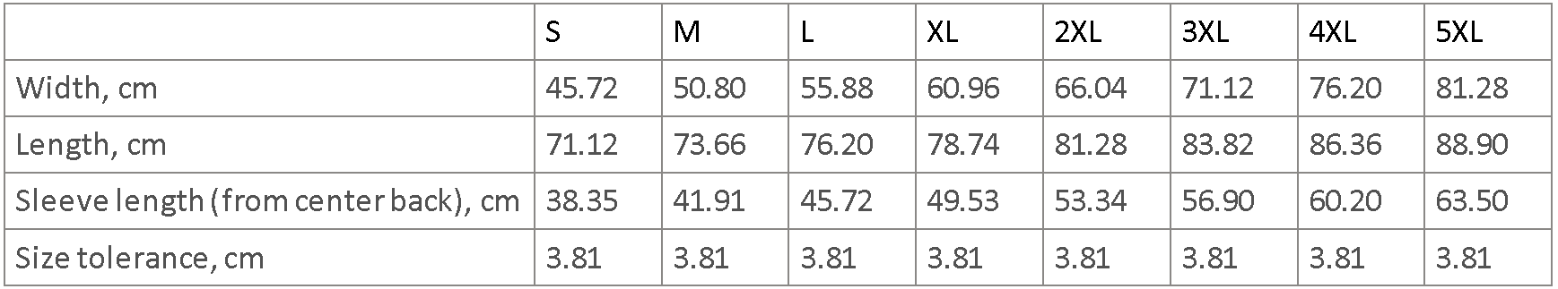 Sizing Charts